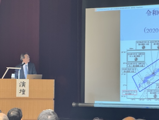 また、基調講演として元気象庁長官で東北大学大学院特任教授の西出則武氏をお迎えし、「能登半島の地震災害と豪雨災害を振り返る―正しく恐れ、備えるために―」と題してご講演いただきました。講演では日本のこれまでの気候の変化から、近年における気象現象の激化と気象予測について触れられ、「災害先進国である日本では防災リテラシー向上と、正常性バイアスに注意することが激甚化する気象災害から身を守るために重要である」と述べられました。