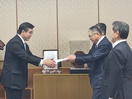 JA石川県連(中央会・信連・全農県本部・全共連県本部)は12月24日(水)、石川県庁で馳知事に対して令和8年度の県農業関係予算要望を行いました。